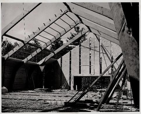 The church itself holds 400 and is covered with a shingled mansard roof that almost hugs the ground. The rectory, built for the "good old days," is large and contains suites for six priests. The interior of the church is open and warm, and the rows of pews are set at an angle towards the sanctuary. A feature that strikes the eye is the Stations of the Cross, which are large framed oil paintings donated by the late Frank Morahan of St. Gabriel's Parish. A new feature of the Parish, since October 1995, is Perpetual 24-hour-a-day eucharistic adoration. This takes place in a sea of tranquility: a small chapel originally built for founding Oblates. The chapel is windowless but has two skylights, emphasizing a quiet separation from the busy world. The Blessed Sacrament has not been alone from the beginning: about 250 parishioners participate and others have begun coming from neighboring parishes.